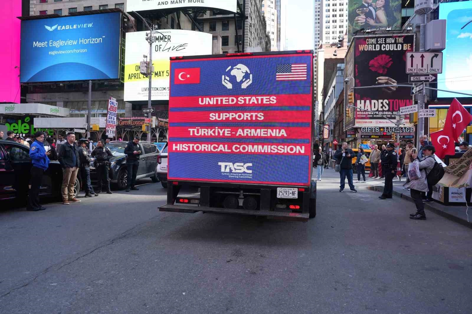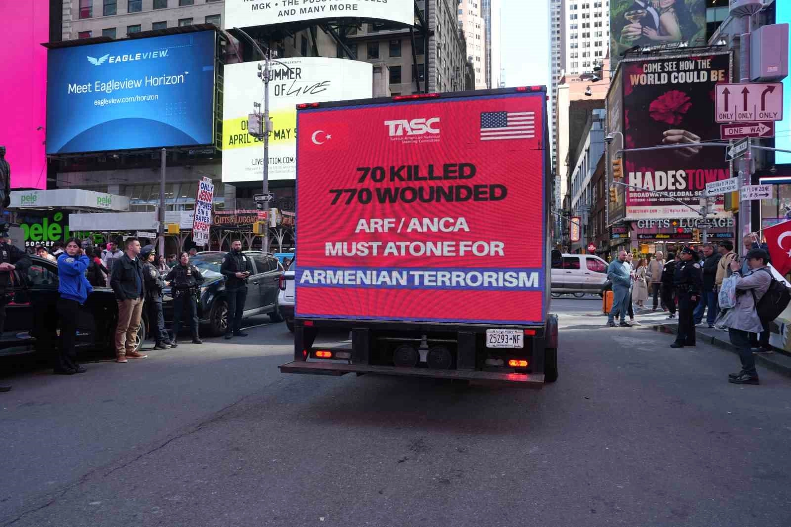 Gösteri boyunca birlik ve beraberlik mesajları öne çıkarken, tarihi gerçeklerin çarpıtıldığı dile getirildi. Gösterinin düzenlendiği Times Meydanı çevresinde dolaşan iki reklam minibüsü, protestonun en dikkat çeken unsurlarından biri oldu. Minibüslerin ekranlarında Türkiye tarihine ilişkin önemli bilgiler paylaşılırken, özellikle ASALA terör örgütünün 1970’li ve 1980’li yıllarda gerçekleştirdiği saldırılarda hayatını kaybeden Türk diplomatlar ve sivillere ilişkin bilgiler New York halkı ile paylaşıldı.