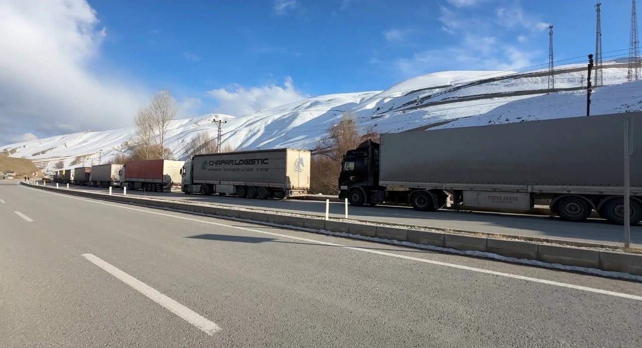 Türkiye’den İran’a yük taşıyan çok sayıda tır, gümrük sahası ve çevresinde bekleyişini sürdürüyor.