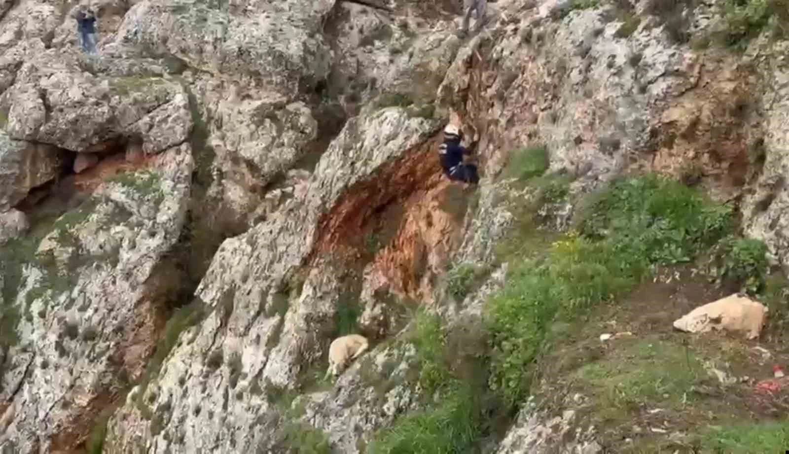 Şanlıurfa’da uçurumdan düşen köpek, itfaiye ekiplerinin 4 saatlik çalışması ile kurtarıldı.