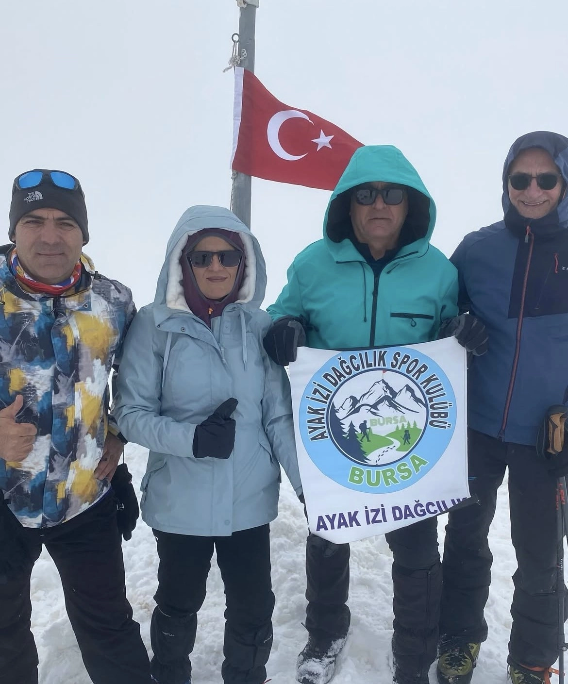 Yoğun kar örtüsü ve dondurucu soğuğa rağmen zirveye ulaşan ekip, 2 bin 543 metrenin ölçüldüğü zirvedeki Türk Bayrağı noktasına ulaştı.