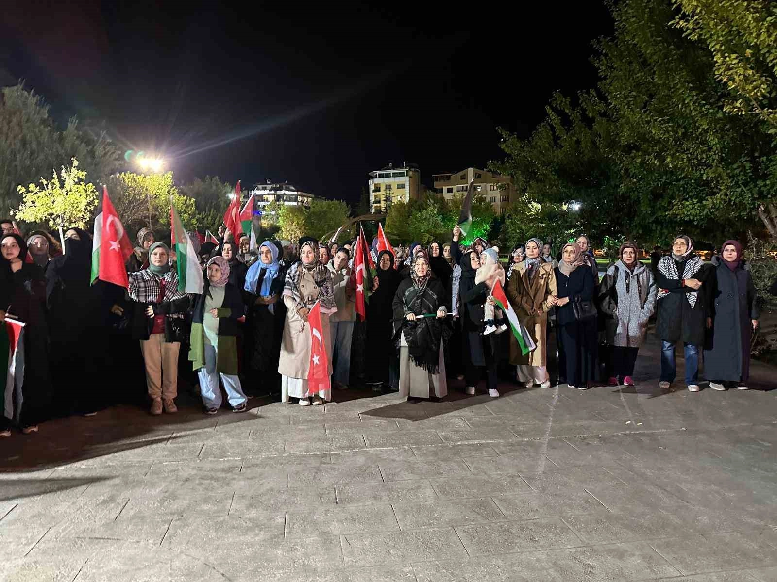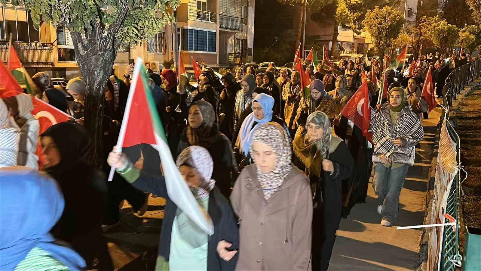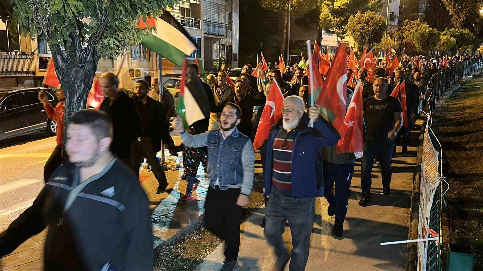 Cumhuriyet Mahallesi’nde bulunan Atapark Meydanı’nda bir araya gelen vatandaşlar, ellerinde Türk ve Filistin bayraklarıyla Atapark çevresinde Sumud Filosu ve Gazze’ye destek için yürüdü.