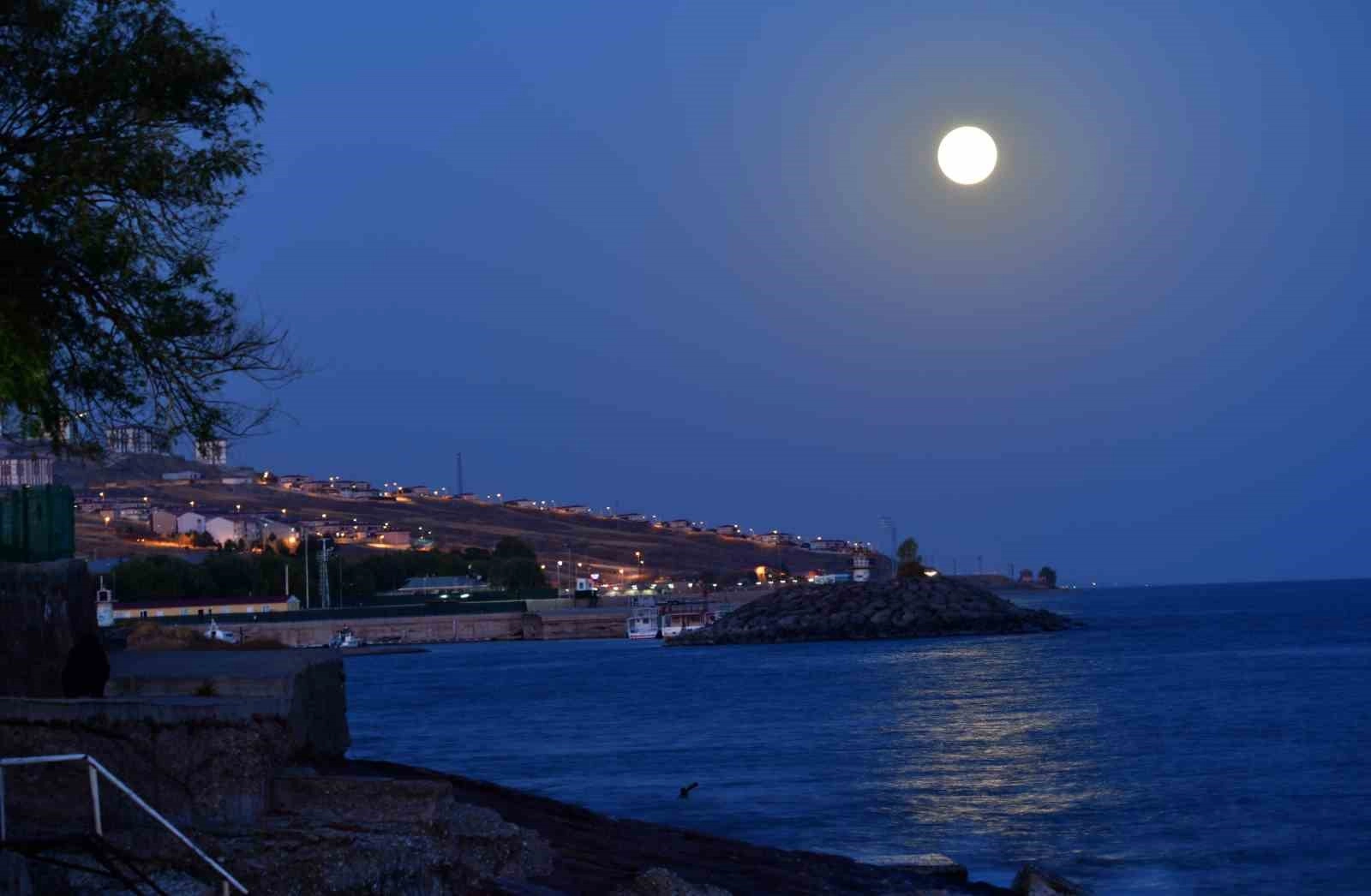Van Gölü’nde dolunayın en güzel izlendiği yerlerden biri olan Ahlat iskelesi, bu muhteşem manzarayı görmek isteyen vatandaşlarla dolup taştı.