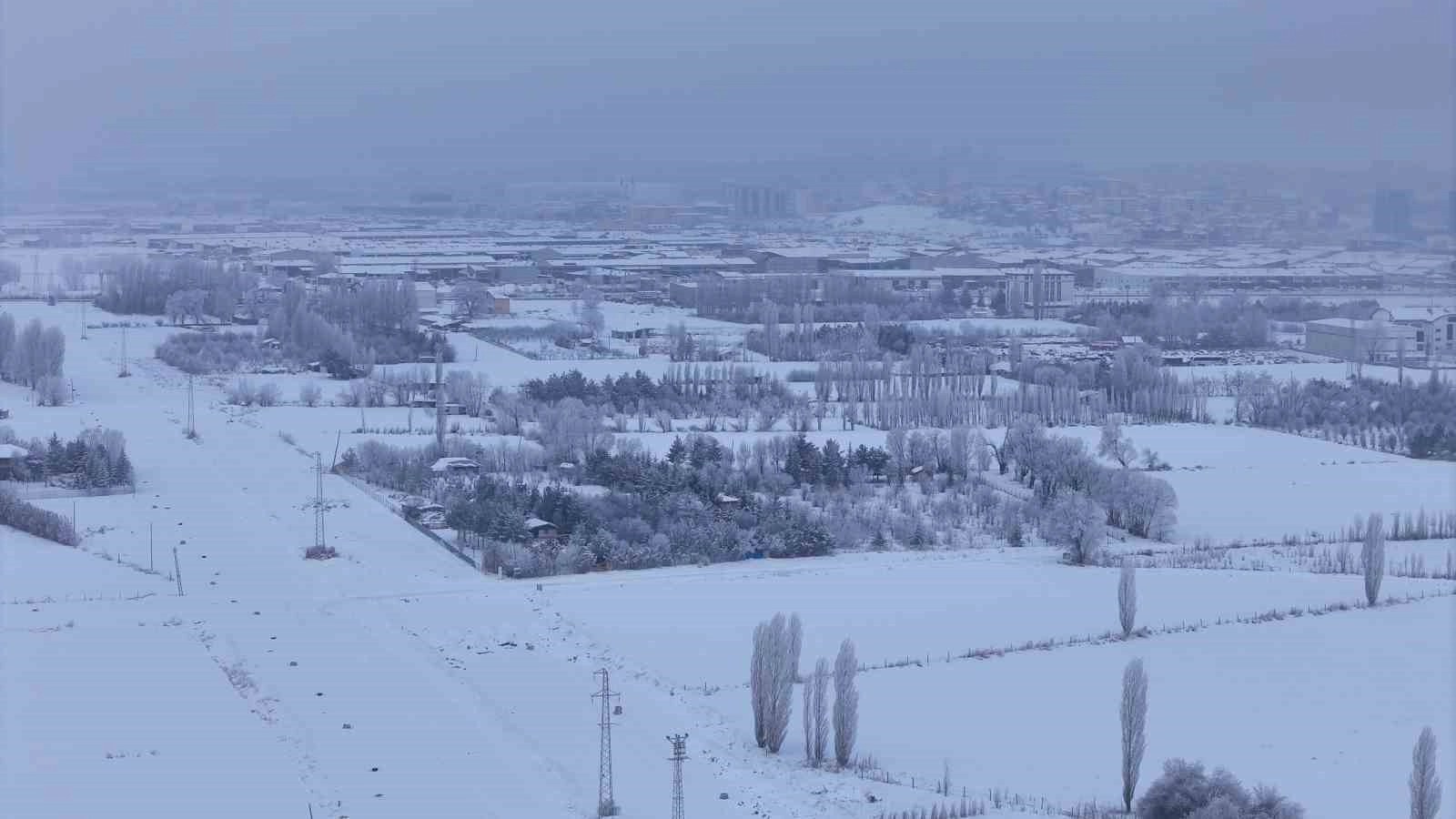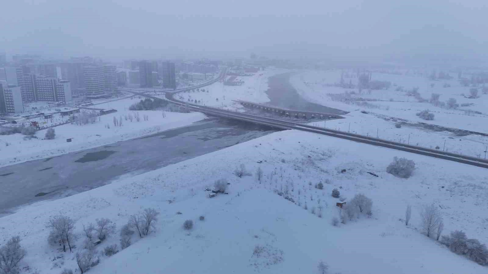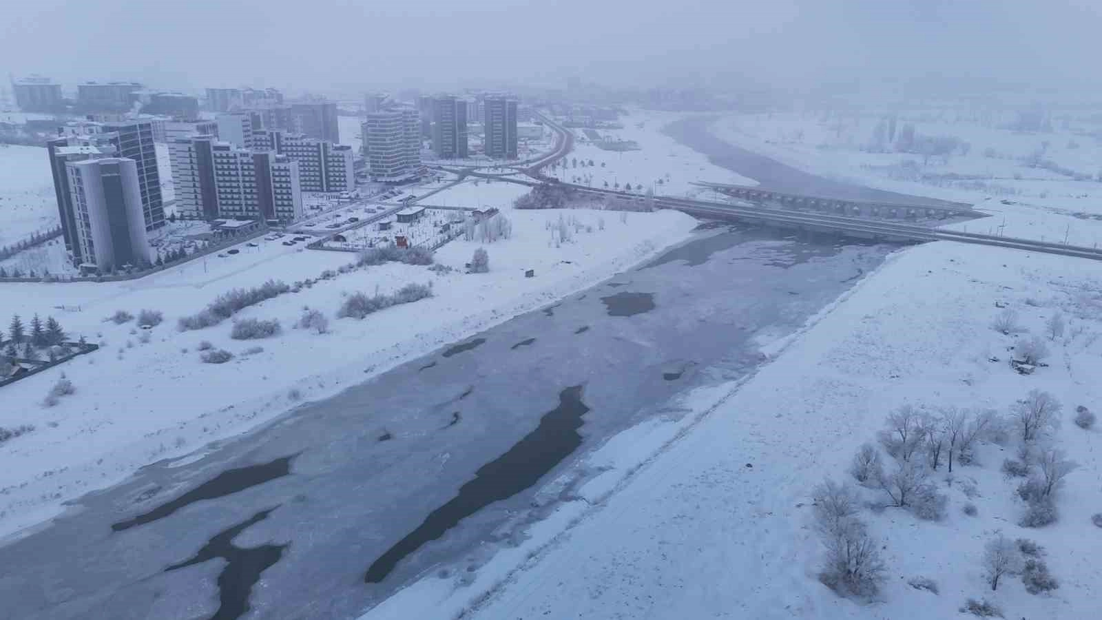Selçuklu Devleti simgesi olan ve Sivas’taki aydınlatma direklerinin üzerinde bulunan çift başlı kartal figürü de soğuk havaya yenik düştü. Kentteki soğuk havanın yansımaları havadan görüntülendi.