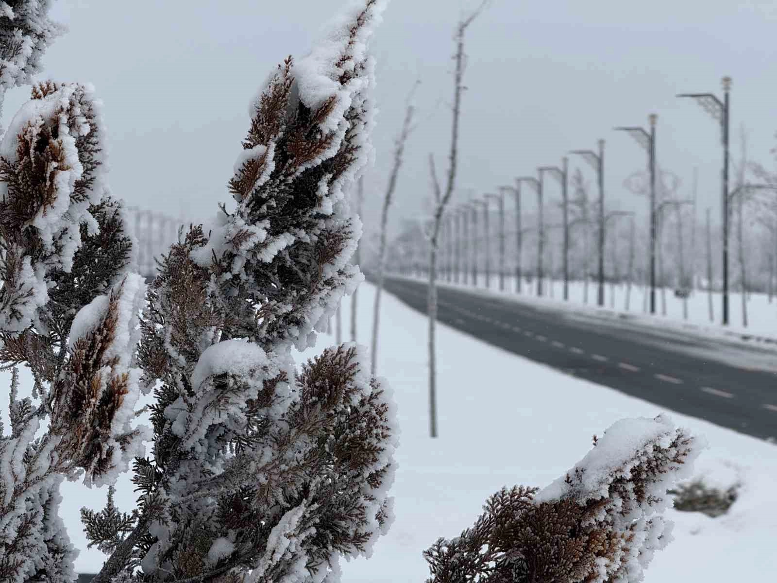 Öte yandan kentte bulunan bitkiler ve ağaçlar da dondu. Yüzeyleri buzla kaplanan bitkiler ve ağaçlar, mest eden görüntüler ortaya sundu.