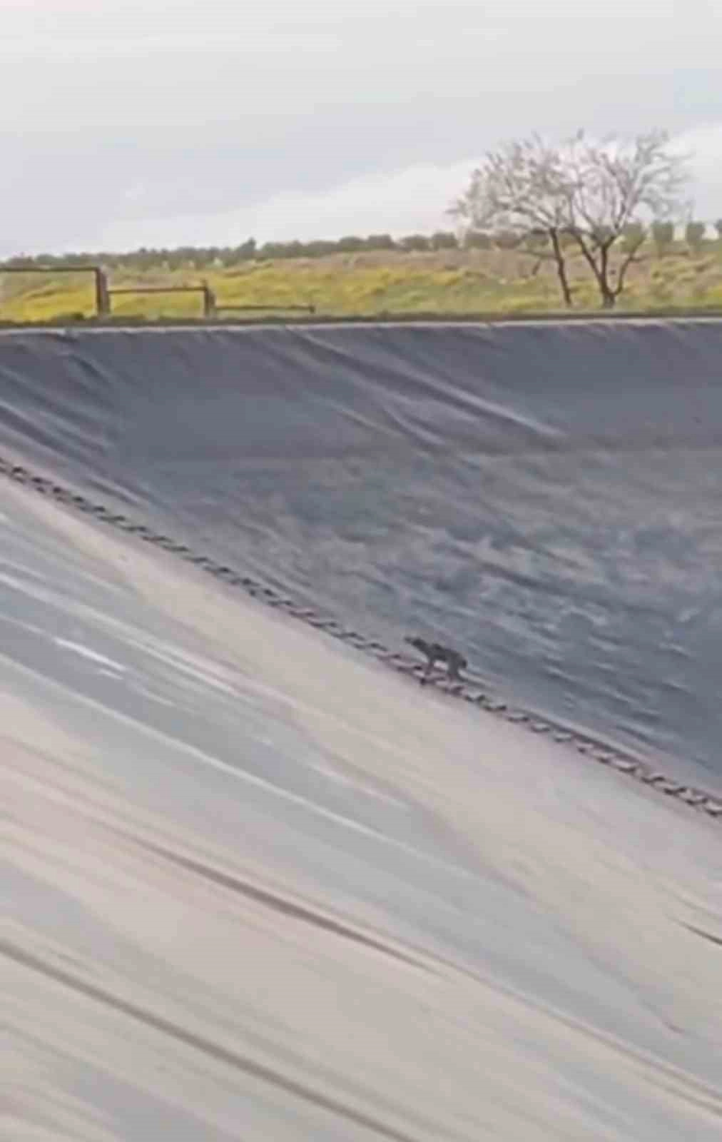 Yapay sulama göletinde mahsur kalan tilkiyi gören vatandaşlar, durumu itfaiye ekiplerine bildirdi.