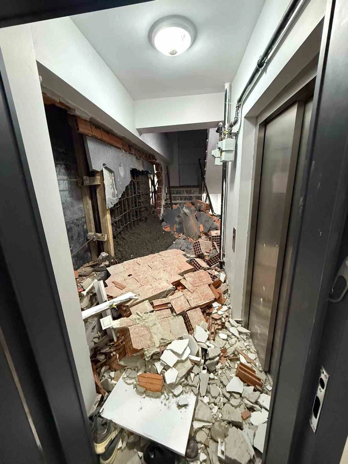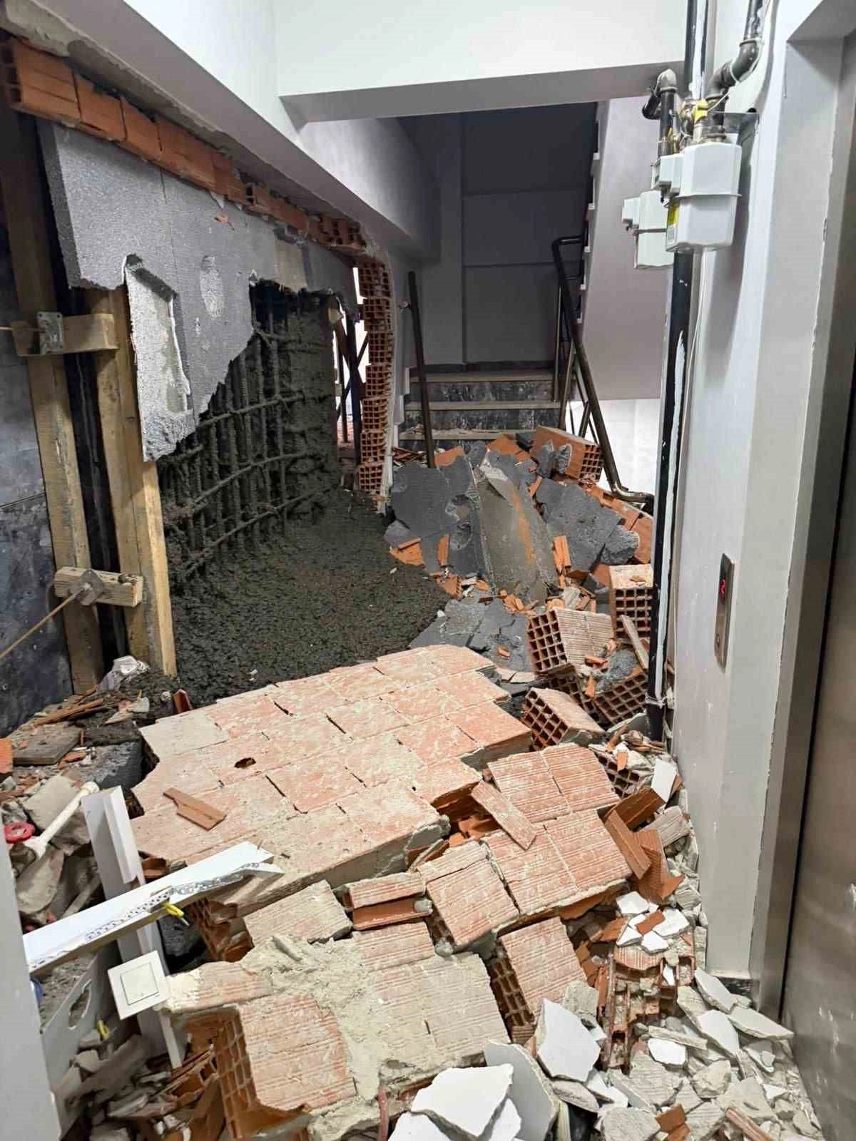 Edinilen bilgiye göre, 5 katlı binanın bitişiğinde bulunan inşaatta beton dökme işlemi yapıldığı sırada basınç nedeniyle binanın 3. katındaki apartman boşluğu ve bir daire içindeki duvarda yıkılma meydana geldi.